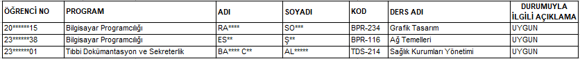 TEK DERS SINAVI BAŞVURU SONUÇLARI
